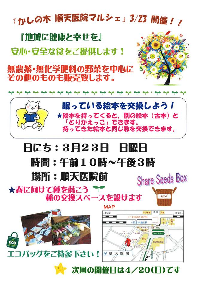 3月23日、シネコヤさんとかしの木マルシェの協働イベント 「絵本とりかえっこ」プロジェクトが開催されます。