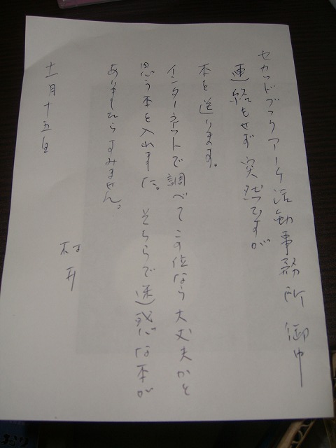 ご丁寧なお手紙も頂きました。感激です。