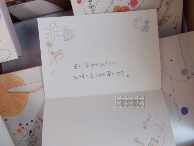 寄付していただいた本は早速活用させていただきました。