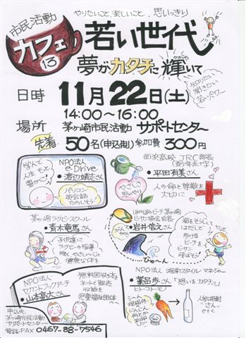 11月22日にちがさき市民活動サポートセンターで行われる「市民活動カフェ13 夢がカタチに輝いて」