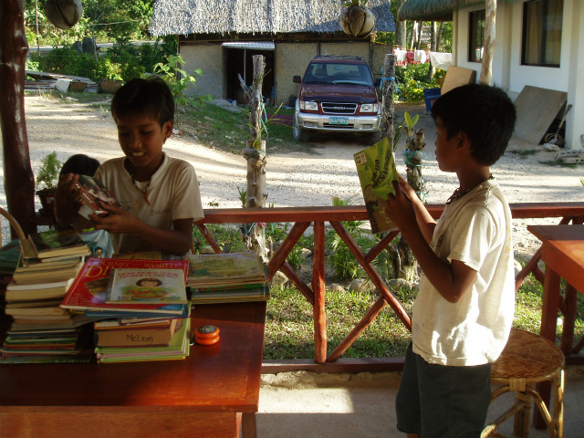 私設の図書コーナーでSBAが寄贈した本を読む子供たち。
